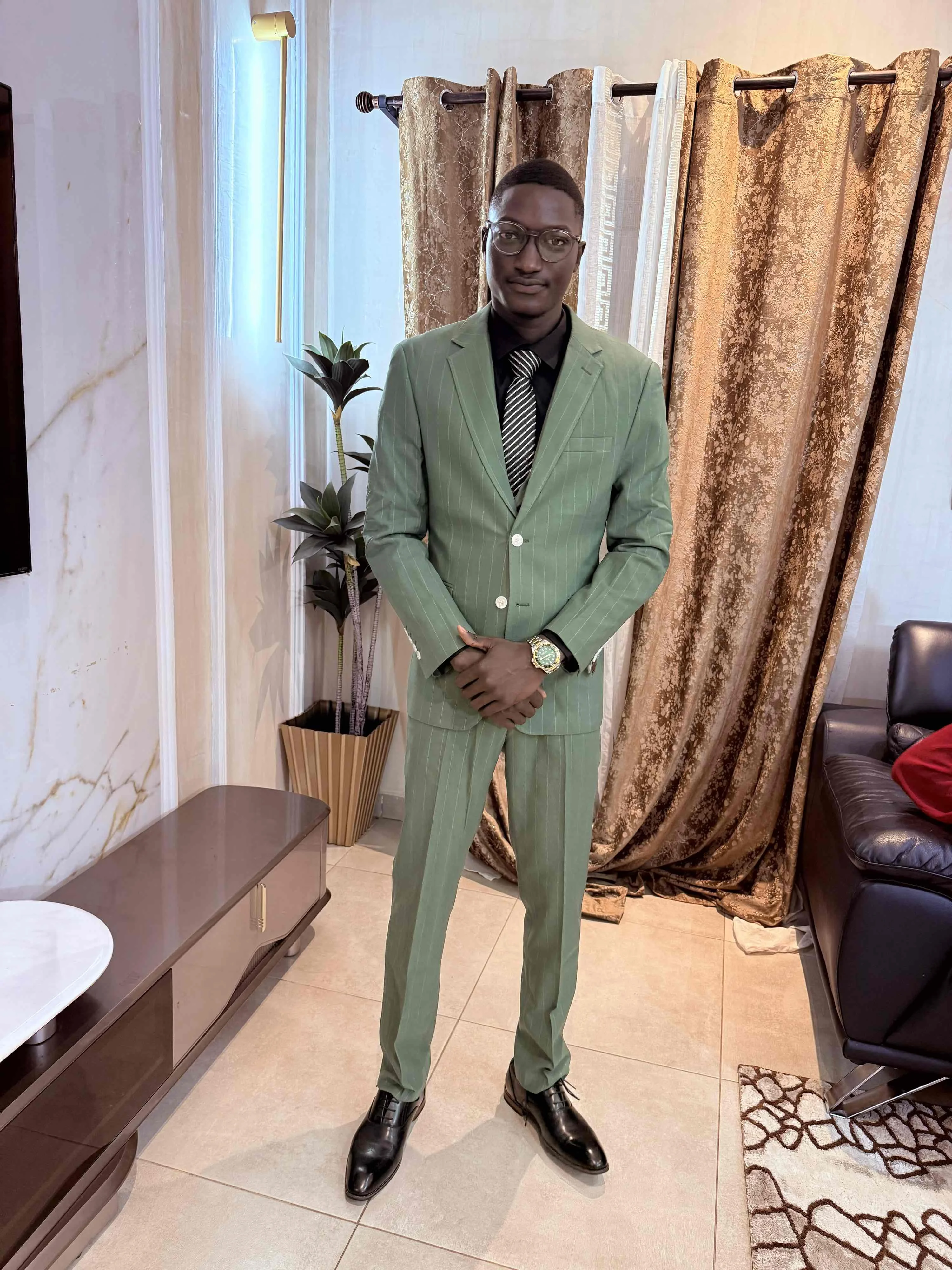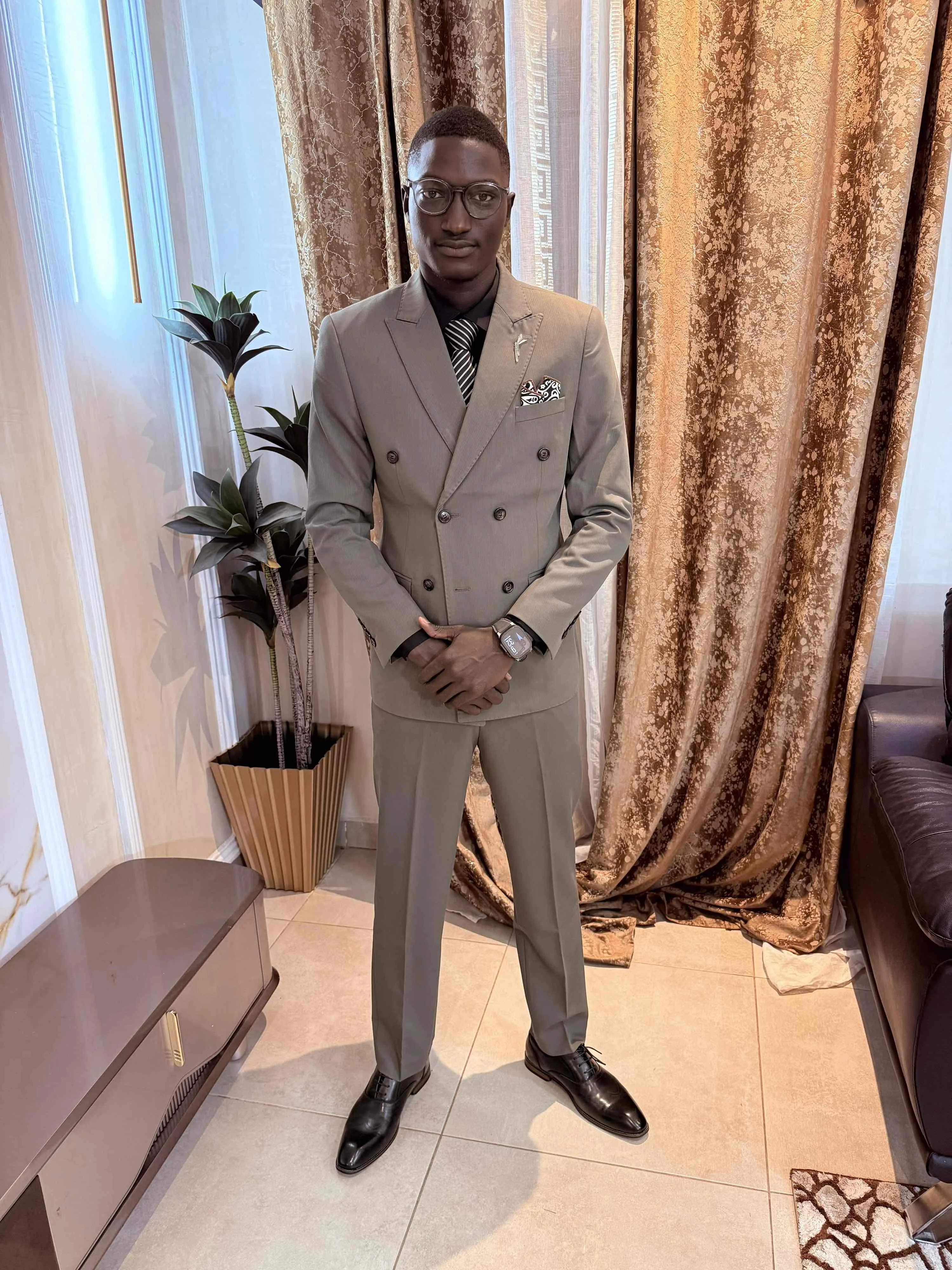 très beau costume sûrement sure avec une belle qualité de tissus franchement je recommande fortement pour vos besoin en cas de mariage ou autre événement vous allez faire la différence avec votre style 🫱🏾🫲🏽